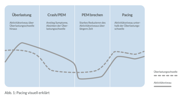 „Pacing“ bedeutet, die durch die Krankheit vorgegebenen Belastungsgrenzen nicht zu überschreiten, ausreichend Ruhepausen und Schlaf einzuplanen sowie körperliche Aktivitäten nur so weit zu steigern, dass sie zu keiner anhaltenden Symptomverschlechterung (PEM) führen.